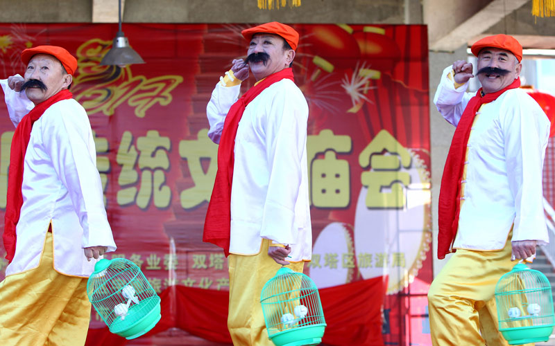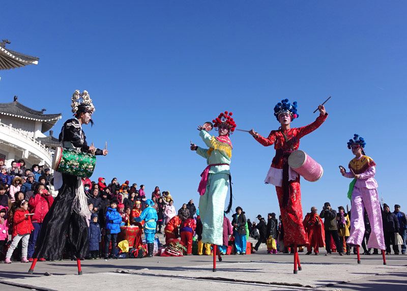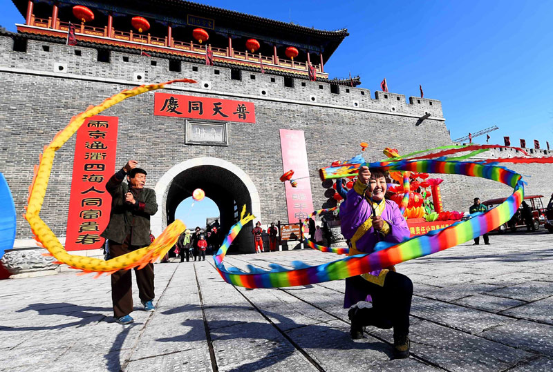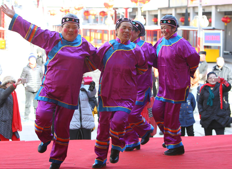 1月30日,市民在辽宁省朝阳市双塔区首届传统文化庙会上表演节目。