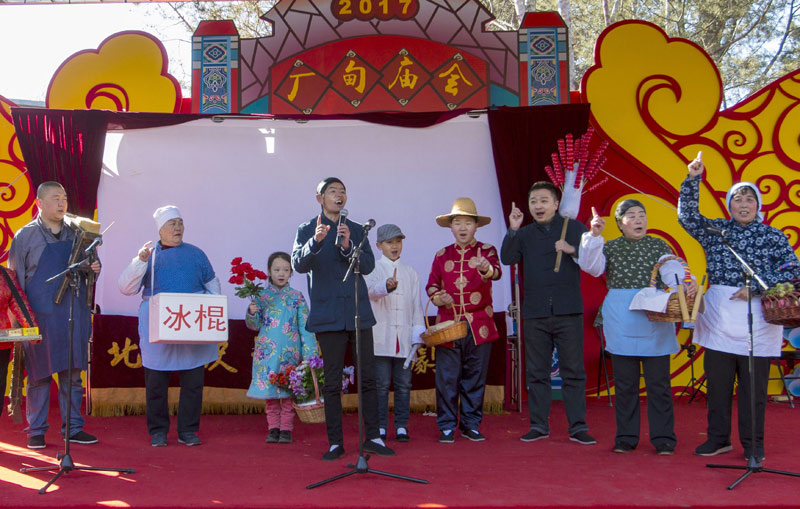 1月30日,演员们在北京厂甸庙会上表演老北京吆喝。