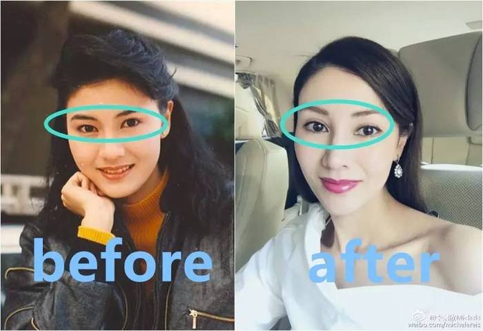 港姐时期的她,双眼皮的褶皱非常小,而加宽了双眼皮之后,双眼有神多了