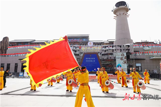 一大早,天水龙城广场人潮涌动、欢声笑语。展演活动现场,身着黄衣、腰系红绸的兰州永宏太平鼓队一登台,便以其巨型圆鼓和昂扬翻飞的旌旗阵列,引发了观众的阵阵惊叹。随着领队一声令下,鼓手们时而前后纵跃,时而左右旋转,身姿矫健地挥舞着鼓槌,鼓声如雷鸣般响起,击出了陇原人民的豪迈与热情。