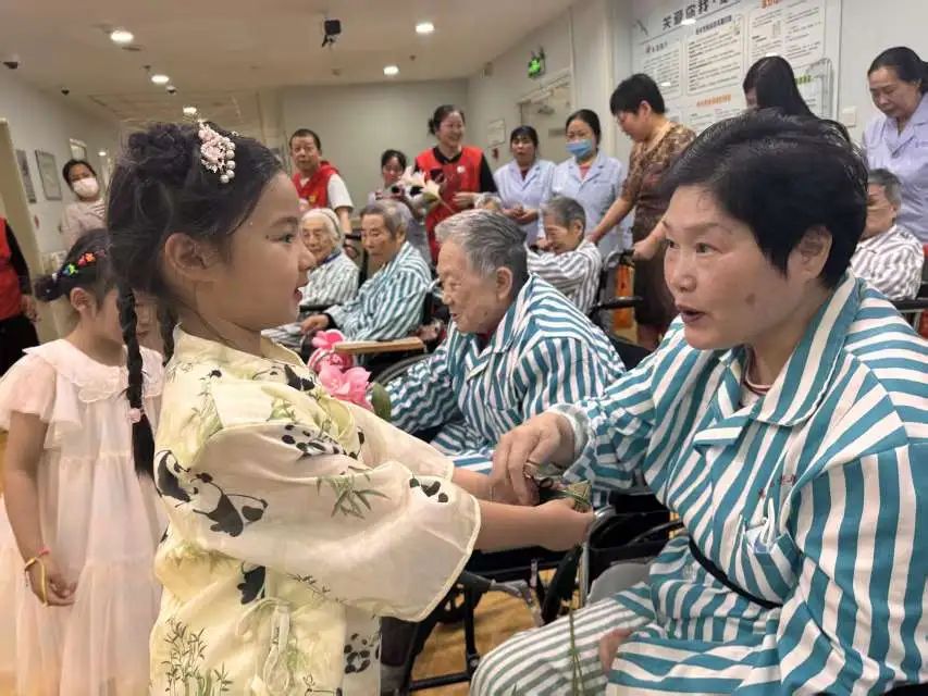 演出结束后,志愿者们将亲手缝制的艾草香囊逐一送到老人手中,草药清香与儿童节的欢悦气息在空气中交织。这场跨越代际的双节盛会,不仅让银发长者们在童趣互动中重拾少年心境,更让端午民俗在代际对话中焕发新生机。