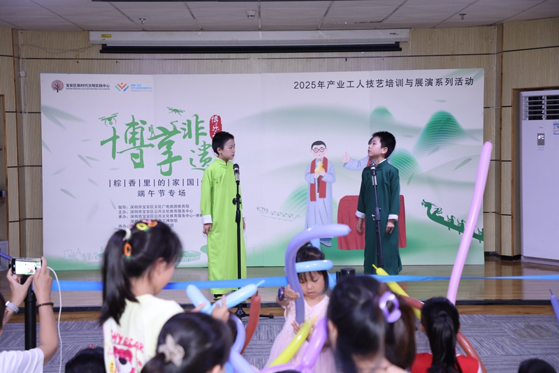 深圳新闻网2025年6月3日讯(记者 童小晋 通讯员 李姣 唐蕾)当端午粽香与非遗韵律交相呼应,当六一童趣与传统技艺相遇,5月31日至6月1日,“博享非遗·博乐社”产业工人艺术非遗培训与展演系列活动精彩上演,相继推出“粽香里的家国情”端午专场和“传统艺术与美育浸润”儿童节专场。活动融合民俗体验、文艺演出与美育启蒙,为产业工人及其子女打造沉浸式文化体验平台,让非遗之美在传承中焕发时代光彩。
