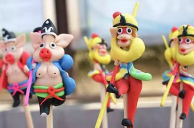 旧时北京街头,尤其是在白云观、白塔寺、护国寺、东岳庙、蟠桃宫等庙会上,常有许多敲糖锣的摊贩,其中有不少是捏面塑的。起初,都是些插棍面塑,多捏些孙悟空、猪八戒之类,走街串巷,供孩子们买玩。