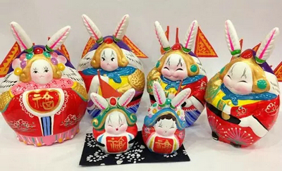 粉白嫩生的小脸蛋儿涂一点胭脂,长长的白耳朵上描着浅红,小巧的三瓣儿嘴,细长的丹凤眼,拿上药杵,骑上老虎,走喽,驱魔治病去喽!