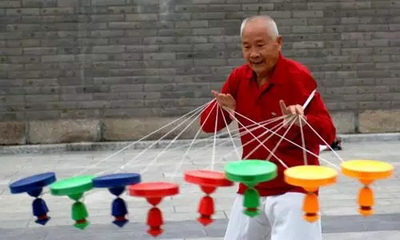 空竹,以竹木为材料制成,因中空而得名,相传在中国已有1700多年的历史。抖空竹讲究“形、神、意、气”,这也是说抖空竹能够健身养性的重要原因。在很多老北京人的记忆里,沐浴着晨光抖空竹的鹤发老人是老北京一景。