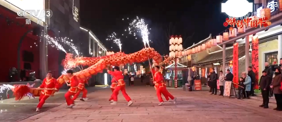 老式烧饼色泽金黄、香酥可口、风味独特,裹满糖衣的糖葫芦一口一个香甜美味,还有非遗美食合成昌的糖麻花,传统美食琳琅满目,年味儿十足,吸引了不少市民游客进店品尝购买。刚入夜,龙灯点亮珠溪古镇,光影画卷流光溢彩,烟花舞龙震撼登场,情景剧精彩上演。