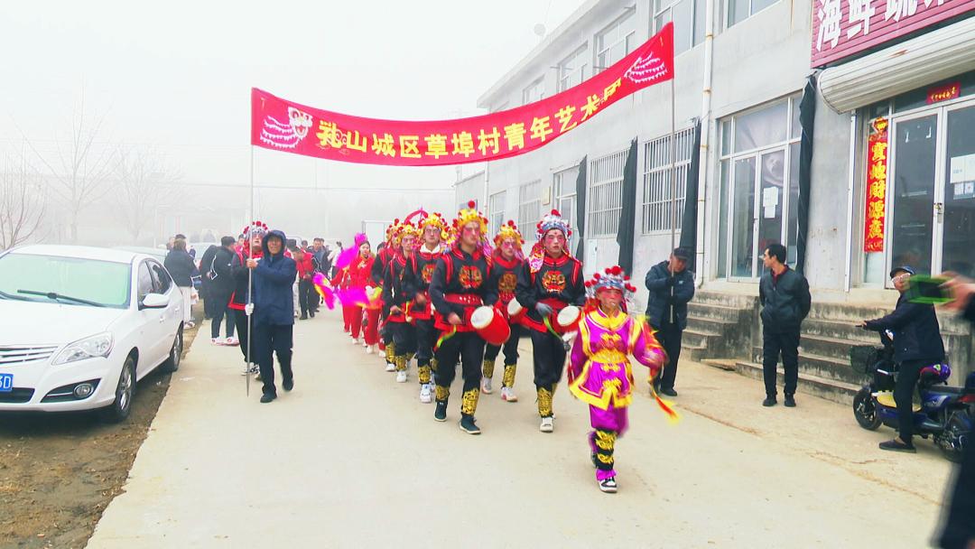 今年春节期间,拥有四十余名年轻人的草埠村青年艺术团几乎每天都要给周边十里八村的乡亲们进行表演,为节日增添喜庆的氛围。
