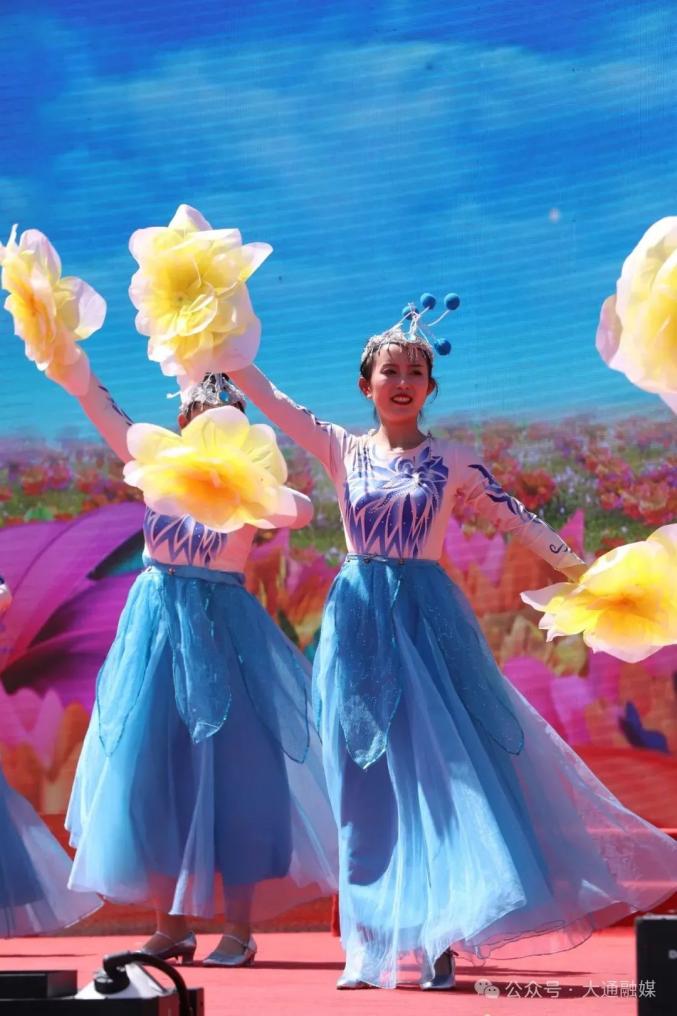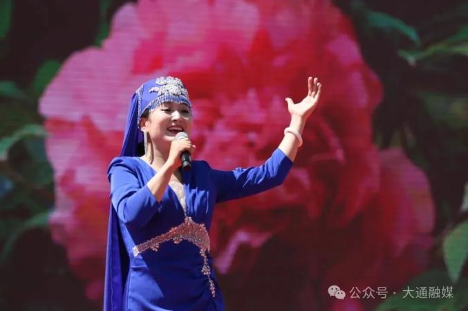 群山环绕,马莲盛开。活动在各民族服装舞蹈《迎宾舞曲》中拉开序幕,开幕式上县委领导为中国民俗学会原副会长,青海民俗学会荣誉会长,青海师范大学博士生导师赵宗福教授颁发荣誉证书,聘请赵教授为大通县文化顾问,为大通花儿可持续高质量发展建言献策、注入新动能。领导、嘉宾及现场观众共同欣赏《花开大通·万紫千红》《花开大通·万紫千红》等四个篇章的精彩纷呈的文艺演出,西北五省优秀花儿歌手及本地优秀歌手,带来原汁原味的花儿歌舞表演,通过多元的演唱与艺术呈现,生动展现百姓对美好生活的向往,彰显大通深厚的文化积淀。一曲曲花儿和歌舞赞美家乡,讴歌新时代,歌颂幸福生活,将活动一次又一次推向了高潮,现场观众不时报以热烈掌声。