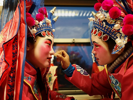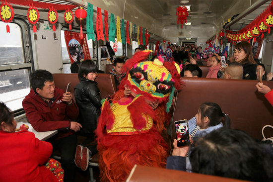 “今天我们准备了社火、舞狮等文艺节目,欢迎大家到6号车厢一起提前闹元宵……”
