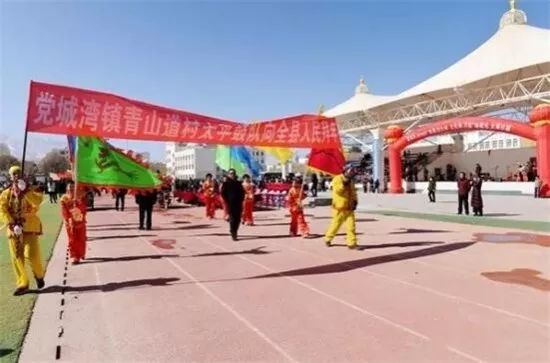 来自肃北县党城湾镇的7支社火队伍相继上场,太平锣鼓震响了整个县城。