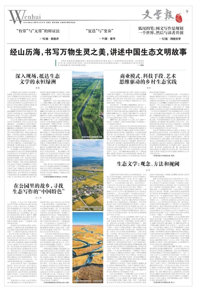 近年来,随着生态文明建设的深入,我国生态文学创作活力迸发,诞生了一大批优秀的生态文学作品。在日前举行的“长三角·大西部文学周”活动中,生态文学的东西部实践成为与会者聚焦的话题之一,本报特邀请几位参与讨论的作家、评论家撰文写下他们的观察与思考。 ——编者