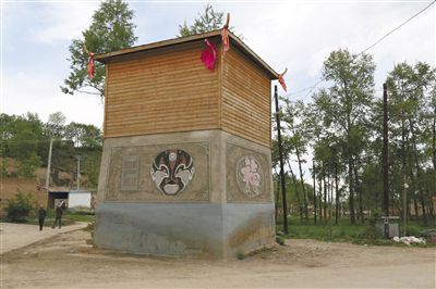 同年10月,县财政投资15万元在村中重建戏台,乘着“美丽乡村”建设项目,在村头修建标志性眉户脸谱四方亭,修建了2000多平方米的文化广场,建造了木质长廊,塑造了2米多高的大理石戏剧人物雕塑2座,分别是《杨家将》中的戏曲人物佘太君和杨六郎,四周绘制大型眉户戏故事壁画及宣传画,营造出较浓厚的戏曲氛围。剧团的工作虽然举步维艰,艺人们还是坚持着,他们组织人员编写新剧本,寻找接班人,想办法增加乐器,添置戏服道具,努力使白土庄眉户戏一路走下去。