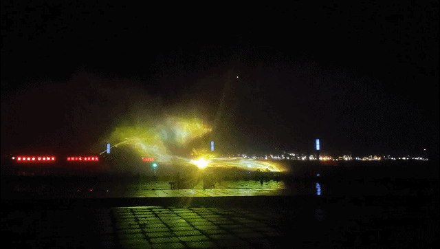 该灯光秀集灯光渐变、水形变幻与音乐节奏“三位一体”。