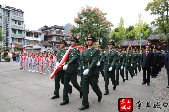 10月1日上午,我县举行2024年国庆节升国旗仪式。这是武警官兵护卫着国旗昂首走向升旗台。记者 杨鹏飞 摄