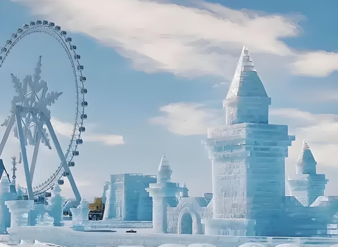 核心亮点:全球规模最大的冰雪主题乐园,冰雕建筑高度突破45米,激光秀与冰雪大滑梯打造奇幻夜游。