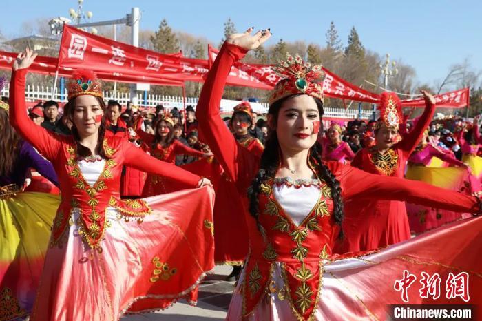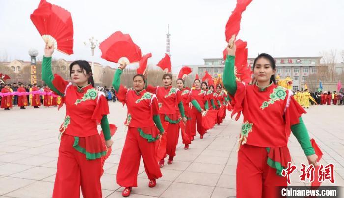 乌鲁木齐2月12日电 (记者 戚亚平)新春佳节,新疆生产建设兵团各地举办社火表演活动,让各族职工群众尽享年味十足的民俗文化“盛宴”,到处洋溢着热闹喜庆的节日氛围。