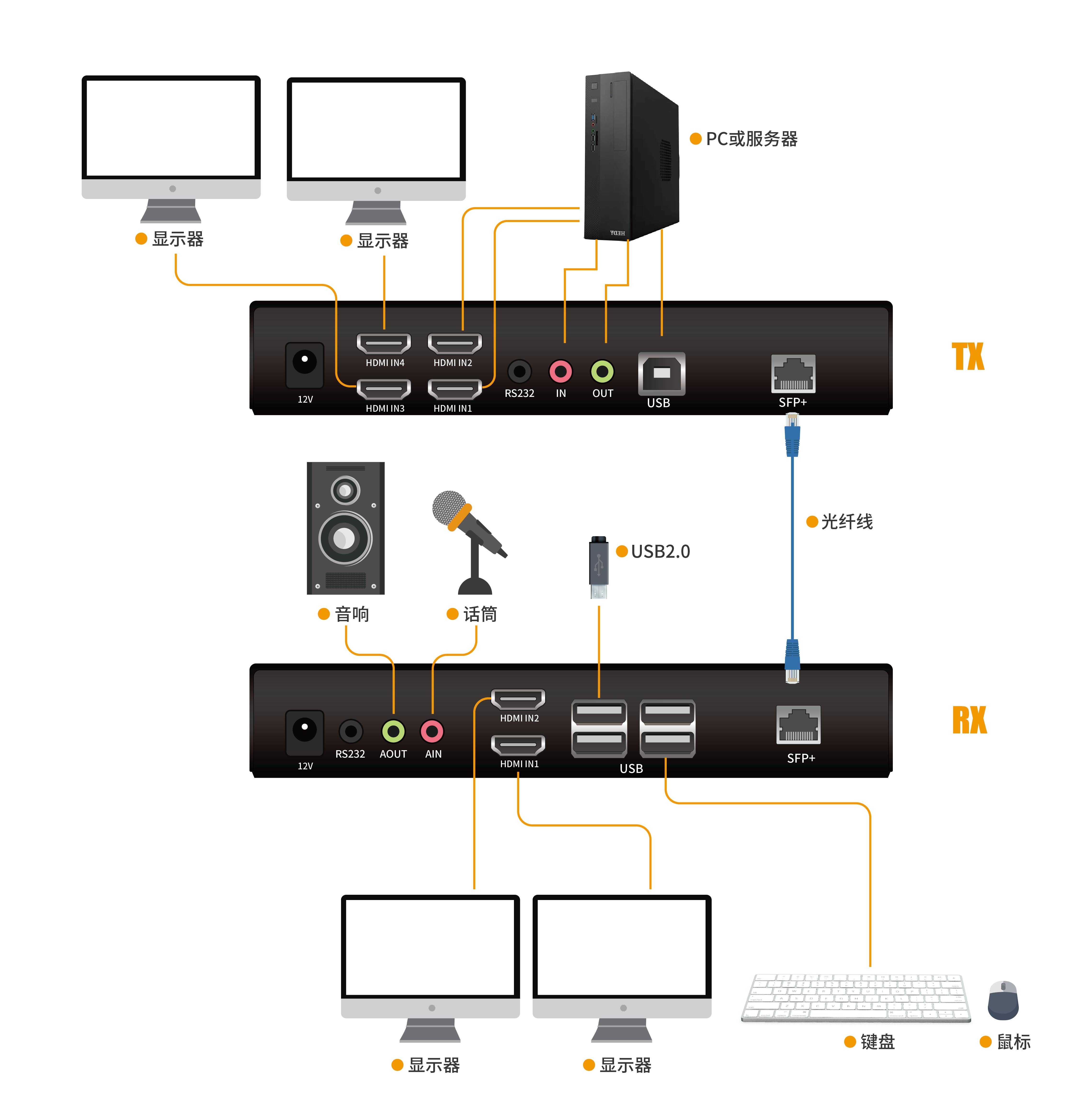 (秦安科技的kvm延长器支持单模和多模光纤,单模最远传输距离为80km,多模最远传输距离为300m,网线最远传输距离为150m。)