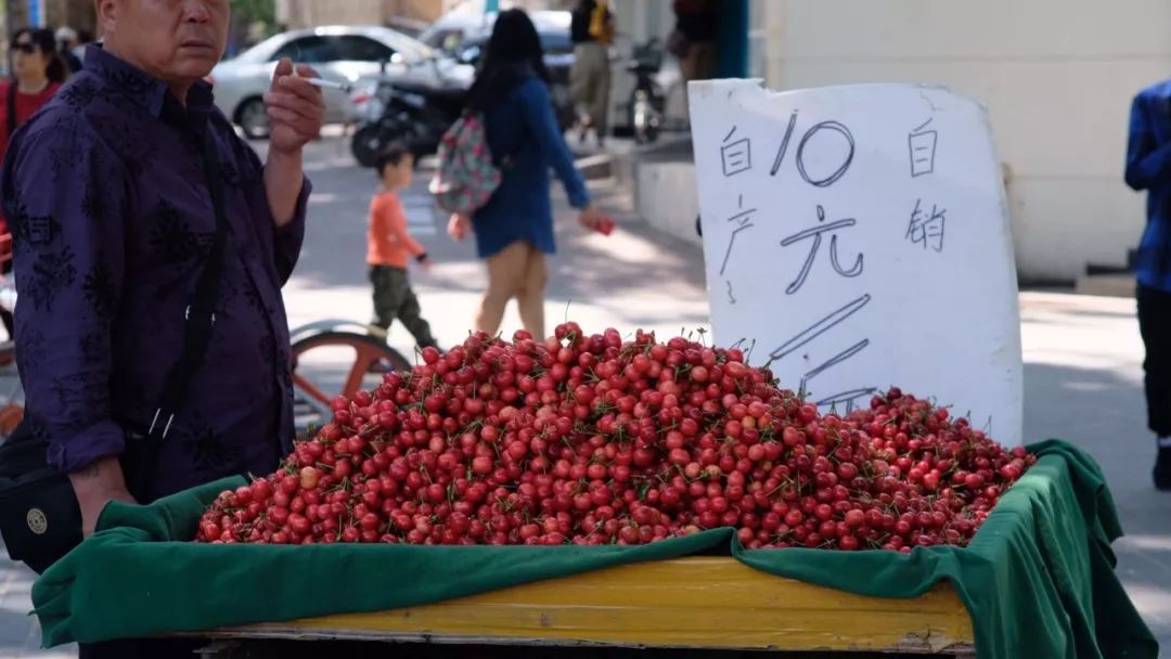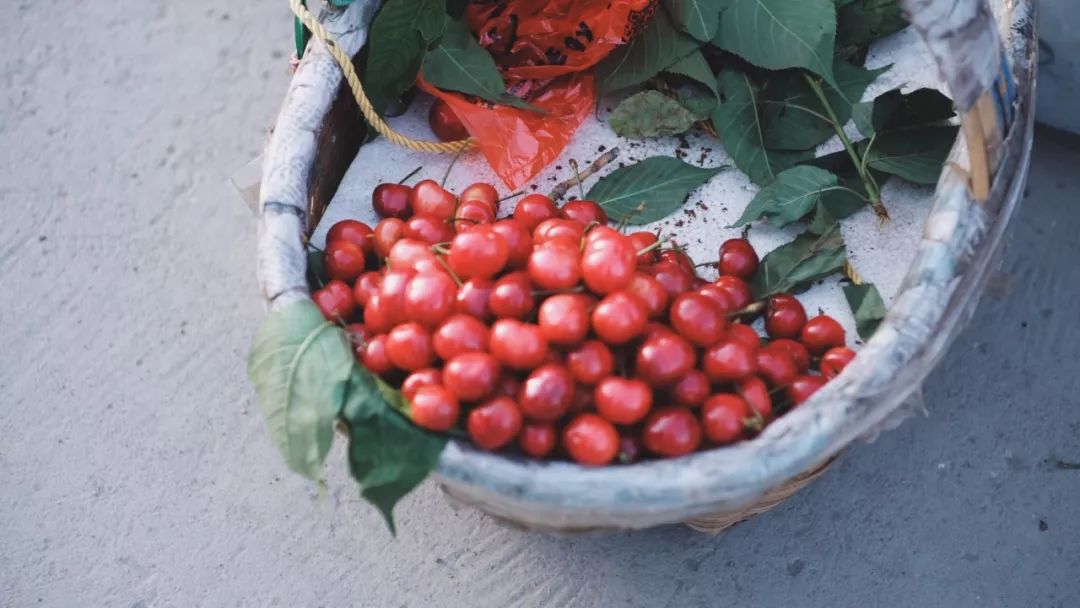 除了每家水果店和水果摊前都摞满的红樱桃,还有很多自家刚采摘下来拿来城里卖的。