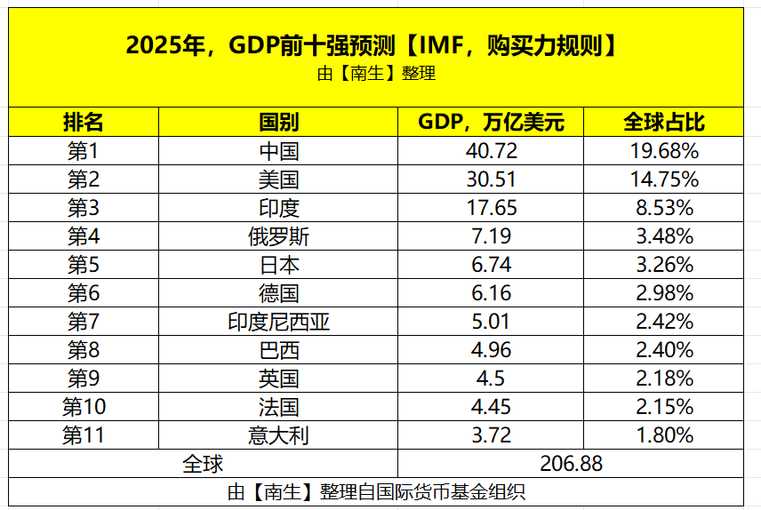 将视线转向全球,国际货币基金组织这份按购买力平价计算的GDP榜单,清晰展现了一个多极化世界的新图景。中国以40.72万亿美元的GDP总量高居榜首,占全球经济19.68%,制造业和消费能力都遥遥领先。