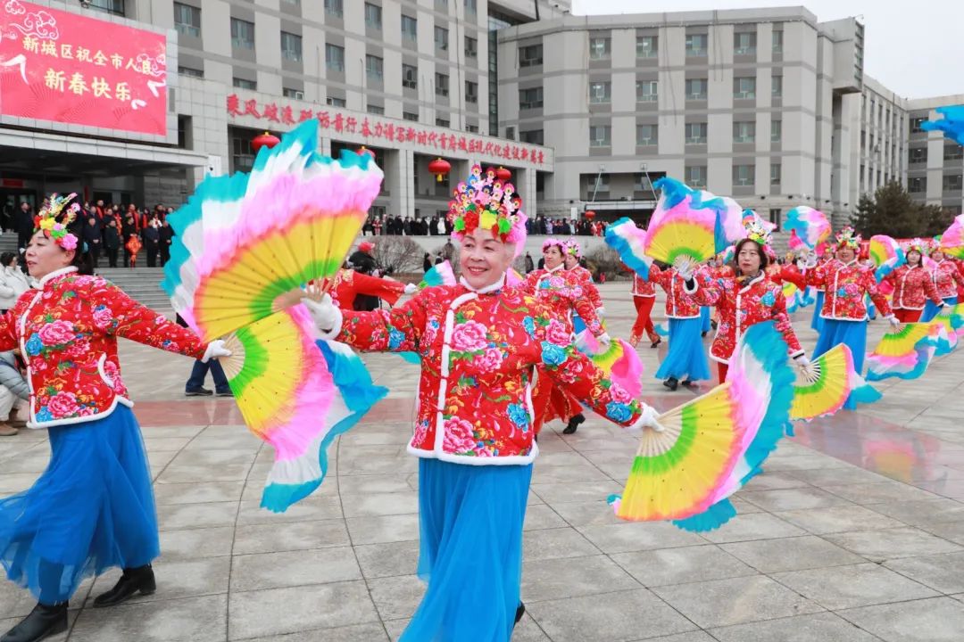 狮舞龙腾闹新春,社火秧歌庆新年。为进一步营造喜庆祥和的节日氛围,恭祝全市各族群众合家团圆、幸福安康,2月18日上午,“放歌新时代 谱写新篇章 欢乐拜大年”2024年新城区团拜社火文化活动在新城区政府广场热闹上演。