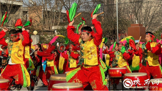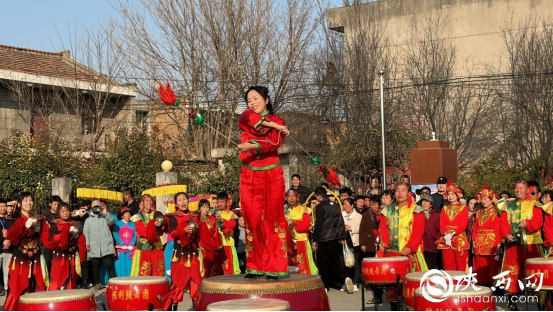 陈利鼓舞团是本次社火活动中不可或缺的一部分。成员们身穿鲜艳的红色服装,手持鼓槌,随着节奏敲击鼓面,他们热情洋溢地表演,每一次击鼓,都仿佛诉说着古老的故事,传递着对生活的热爱和对未来的憧憬。