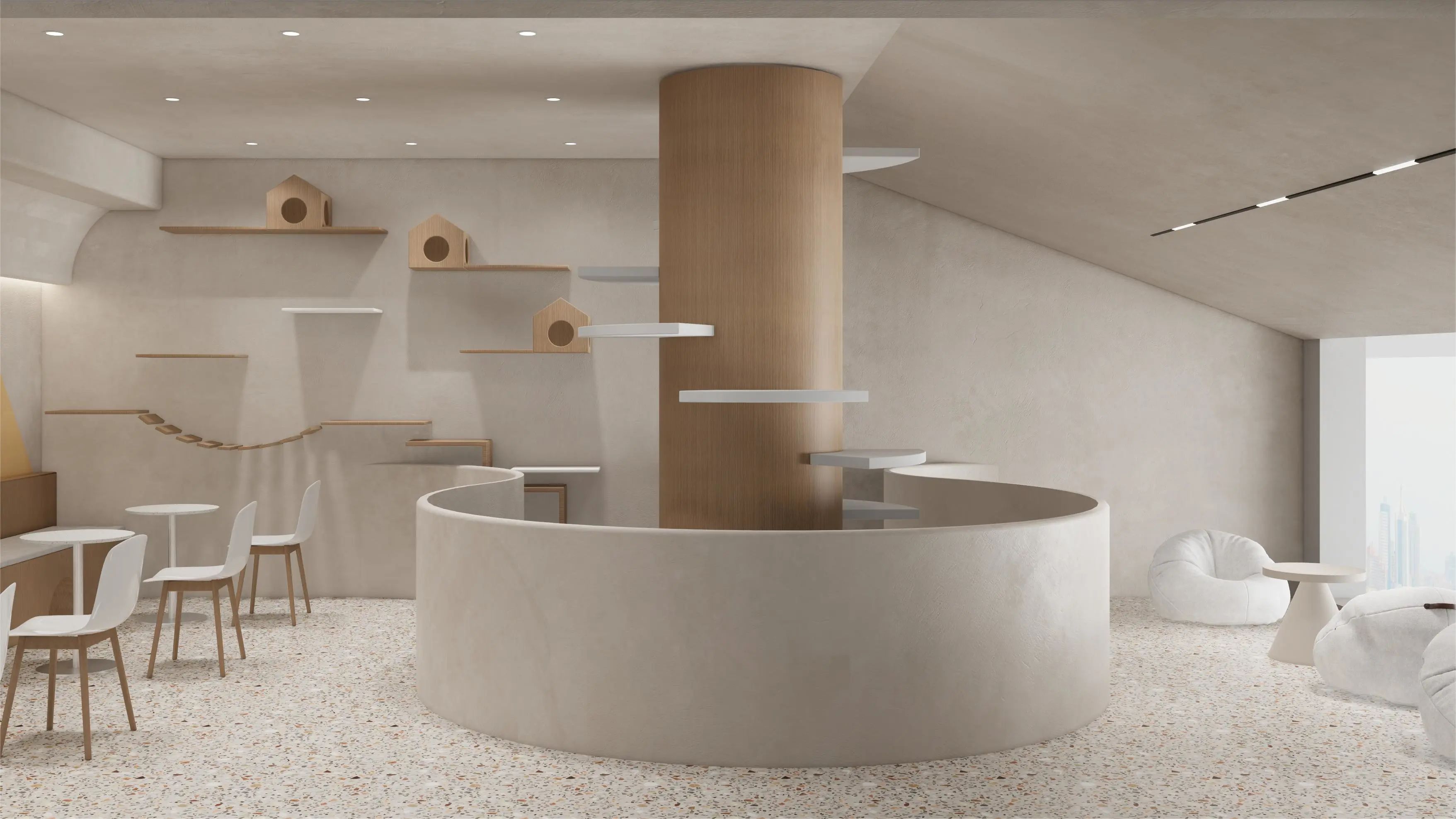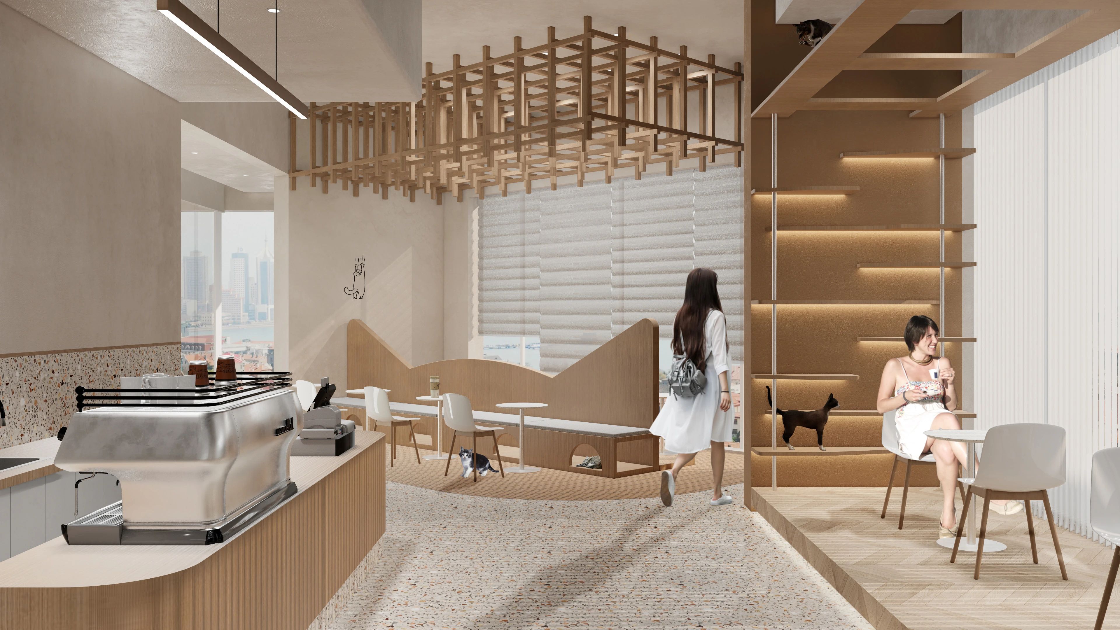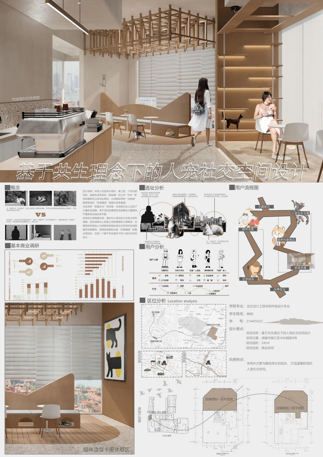 随着社会经济的快速发展,年轻人在追求大城市、高工资、个性化的同时,独居生活带来的“孤独感”和工作“996”带来的精神压力却无处寄托。小动物自带的“治愈感”能帮助消化“负面情绪”提高生活幸福感。与此同时“吸猫文化”的热潮,也导致社会上出现了大量的流浪猫,若不及时改善现状流浪猫会大量增加,严重影响当地生态平衡。项目以宠物猫为例,通过对人宠共处行为的分析和调查,综合宠物与人两者之间的情感和心理需求,合理制定和规划人与宠物和谐相处的社交空间所应该具备的功能属性,把救助宠物和治愈“负面情绪”的概念相结合,完成一个基于共生理念下的人宠社交空间设计。