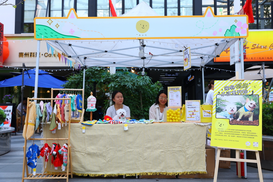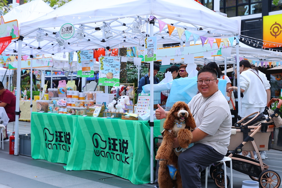 市集在创享塔园区的广场上支起了多个有趣的摊位,并设有障碍赛跑、接飞盘等多个与“毛孩子”尽情玩耍的“宠物游戏互动区”;提供宠物零食、玩具、服装等各式各样宠物商品的“宠物周边零售区”;由专业宠物医师坐诊,提供免费宠物健康检查和咨询服务的“宠物公益服务区”等多个主题专区,满足不同居民的需求。