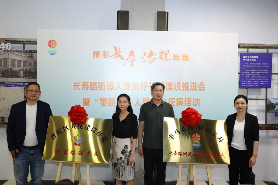 长寿路街道携手创享塔、居民区代表、学校代表和社会组织代表共同发起并成立“人宠友好”社区建设联盟。为推动人宠双向友好型社区建设,长寿路街道在创享塔设立“半马苏河,精彩长寿”长寿路街道社会组织协商点、“创享塔”人民建议征集点。