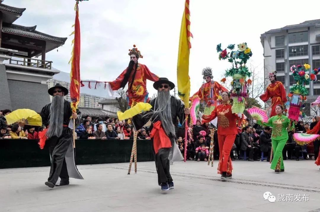 社火是春节必不可少的一个活动,如今,武都区各乡镇、各村基本都有自己的社火团队,表演既有传统的旱船、舞龙,还有现代的街舞。一般排练从腊月进行,表演从大年初二开始一直持续到正月十八、十九“倒灯”结束。