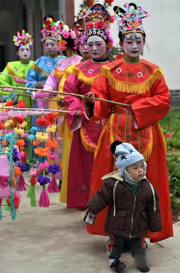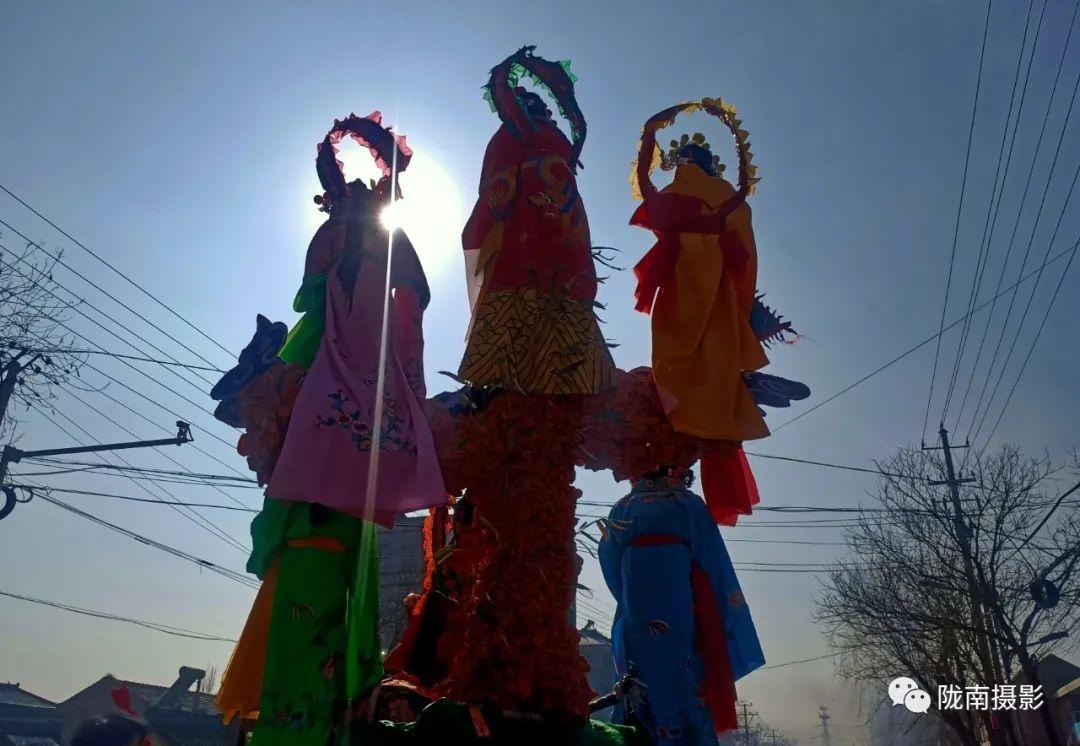 春节期间,徽县各乡镇锣鼓喧天,劲舞欢歌,为群众献上精彩纷呈的社火盛宴。他们舞动着长龙,敲打着锣鼓,划着旱船,跳着舞蹈,挥舞着彩扇,扭动着秧歌,让过年的气氛充满大地,更让群众在热火朝天、如火如荼的文化活动中感受满满的幸福。