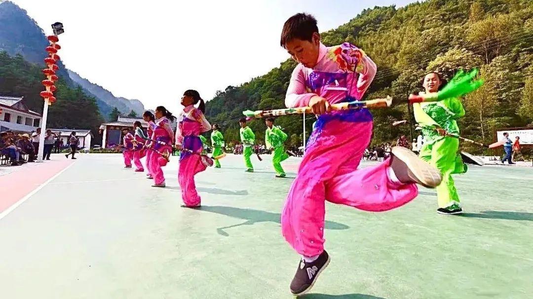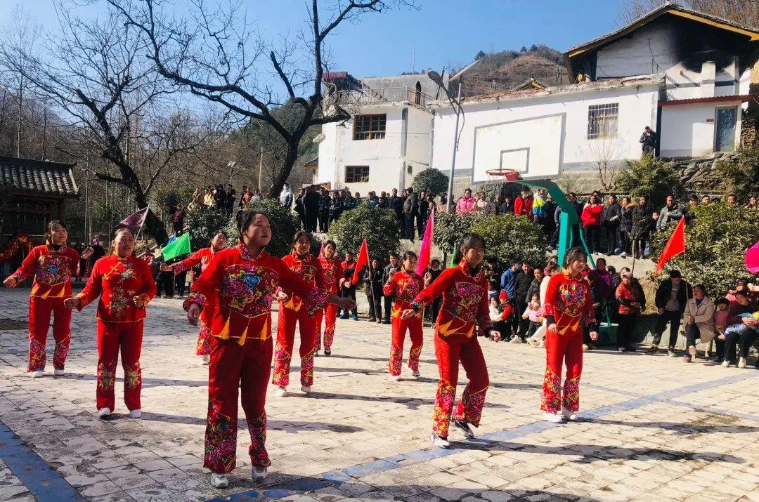 每年春节,康县各村群众便会自发组织传统社火表演。在阵阵锣鼓声中,表演队员们身着艳丽彩装,精神抖擞,神采飞扬,踏着鼓点,以秧歌队、旱船、舞龙、西游记人物、舞狮等形式多样的表演表达对幸福生活的热爱与赞美,为新年增添了节日的浓厚氛围,处处洋溢着一片欢乐祥和。