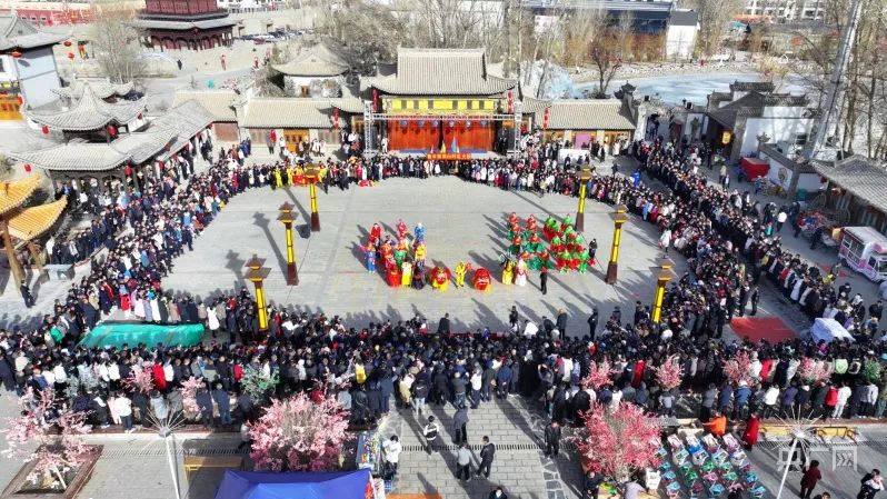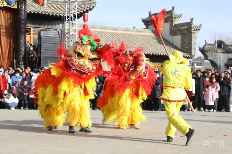 近日,在甘肃省民乐县古城景区,来自该县南丰镇黑山村的社火队整装齐聚,狮舞欢腾,为全县的父老乡亲献上年味十足的民俗文化盛宴和喜庆欢乐的节日祝福。