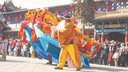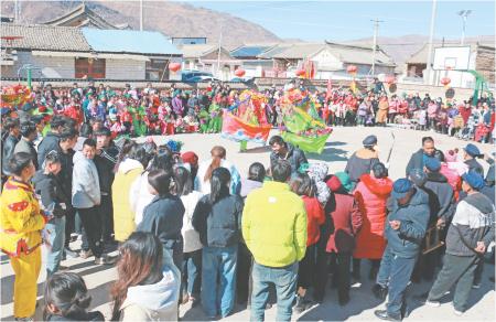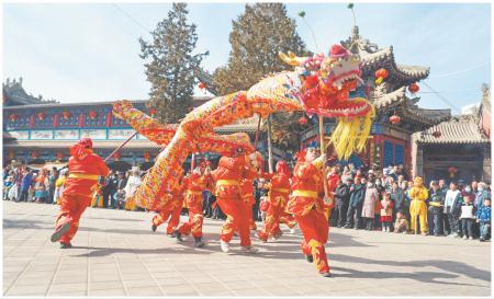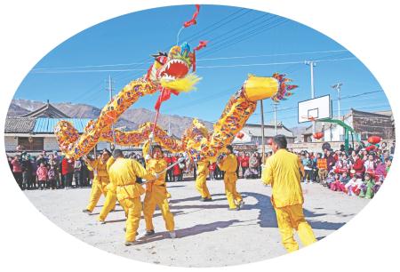安定现龙山秧歌会在玉湖公园舞龙。  牛小栋 摄