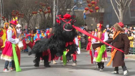 还有表演舞牛的演员们更是铆足了劲,时而温顺、时而腾跃,甚为壮观,让观众一饱眼福,感受新春的欢愉和幸福的年味。表达着人们对耕牛的感恩,庆贺风调雨顺,喜获丰收。