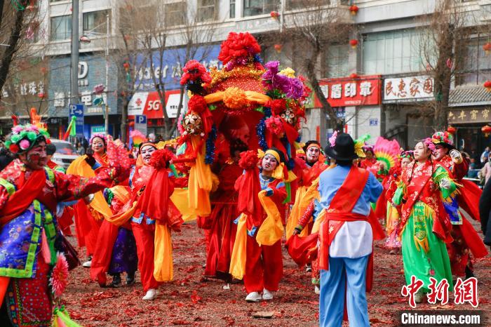 图为青海省西宁市湟中区进行社火巡演。  马铭言 摄
