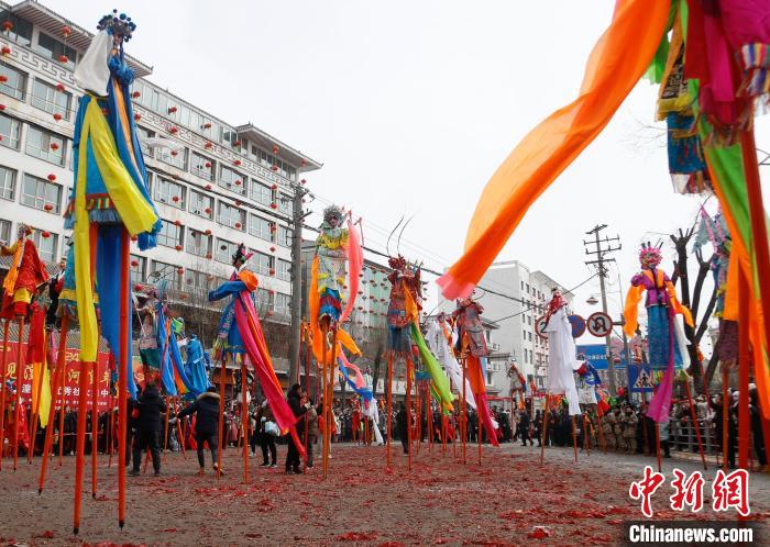 图为青海省西宁市湟中区鲁沙尔高跷表演。  马铭言 摄