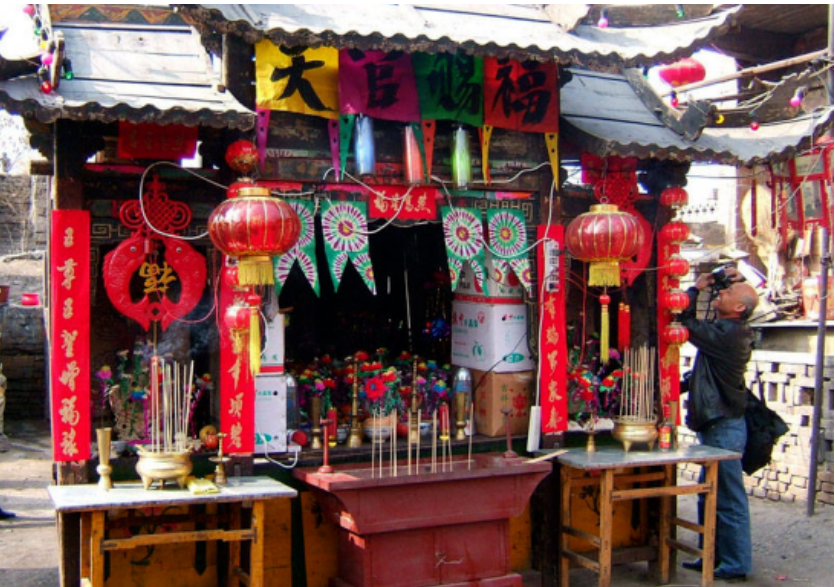 街道上、庙宇间