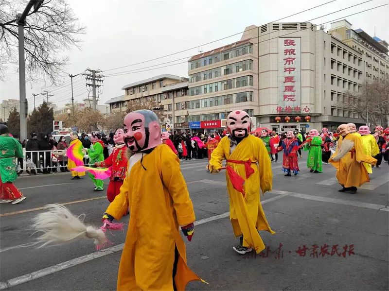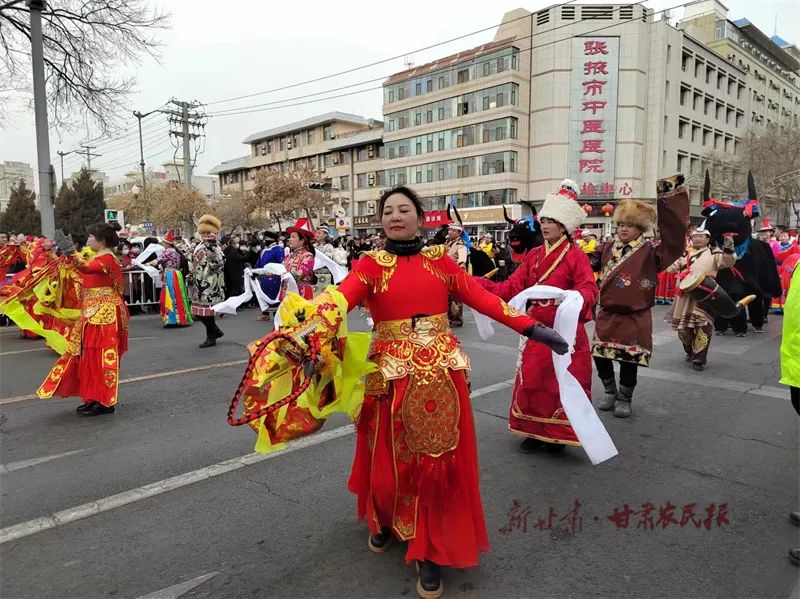 2月22日上午,张掖市2024年社火调演在甘州区精彩开演。