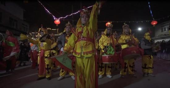 烟花鞭炮放起来,金锣鼙鼓敲起来。正月初八,太阳刚刚落山,一声声清脆的鼓点传来,徐家寨村一年一度的夜社火正式开演了。