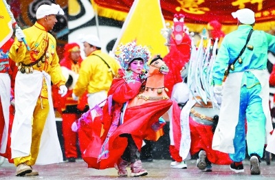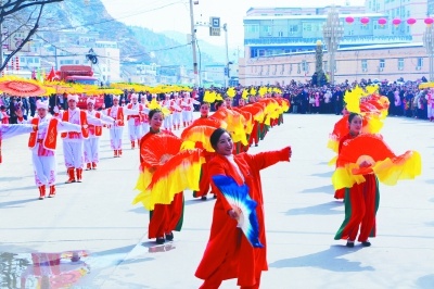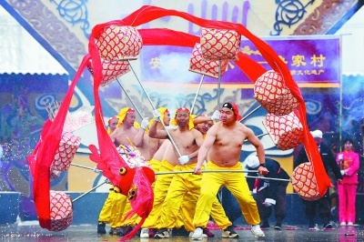 西安市蓝田县汤峪镇高堡村的社火表演吸引了附近十里八乡上万人观看。通讯员 祝盼 摄