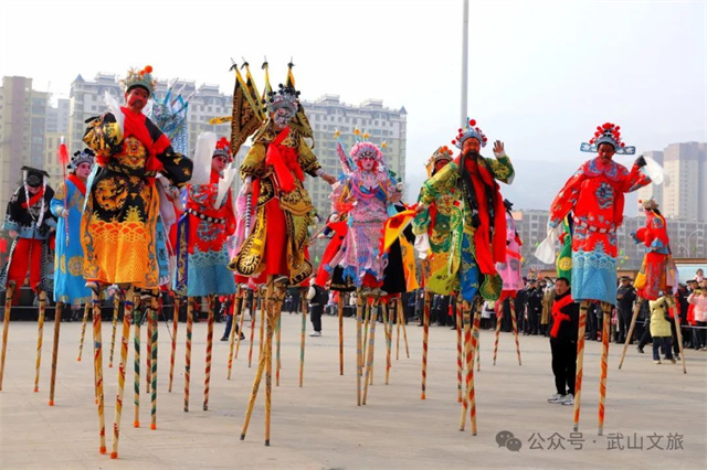社火表演活动守正创新。耍社火不仅是一种民俗活动,更是一种文化传承,承载着丰富的历史文化内涵。武山县带来的高跷,又名“高脚子”,据传有500多年的历史,是市级非物质文化遗产,演出时一定要踩点准确,要求步调一致,和谐统一,随队列的变化和鼓点的节拍而调整。同时,武山县还带来了国家级非物质文化遗产武山旋鼓舞、巾帼武术队的腰鼓《开门大吉》《鼓舞天地》等各类社火表演。清水县带来的清水木人摔跤是“轩辕故里”的一项省级非物质文化遗产,荣获宁夏固原首届全国社火大赛三等奖。随着时代的发展,社火文化的传承也与时俱进、注重创新,麦积区带来的《中国美》展现了新时代美丽中国的风采,花车巡游《遨游宇宙》则展现了科技中国的探索精神,在保留传统特色的基础上,结合现代元素,创新社火表演的形式和内容,让社火文化更具吸引力和时代感。