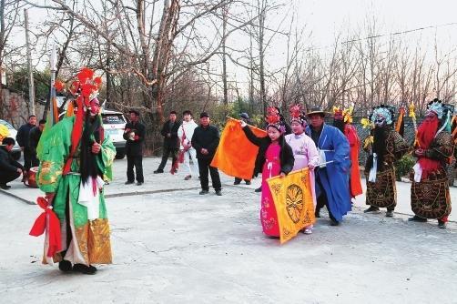 连日来,两当县鱼池乡上滩社火队,走村串户表演,向农户祝贺新春。本报通讯员 王开琮 摄
