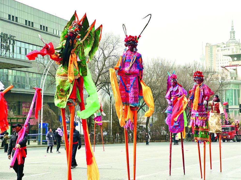 市民陈女士录下几段视频准备发朋友圈,“今天社火进城巡演的节目非常精彩,秧歌扭出了生活的喜悦,锣鼓打出了新年的气势。”