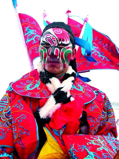 脸谱社火表演是一种颇为直观的表演形式,脸谱设计有谱可依,在突出人物的容貌特征方面刻画十分细致、具体,如关羽左颊上的“七星痣”,杨七郎额上的虎形等。
