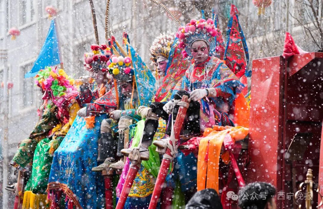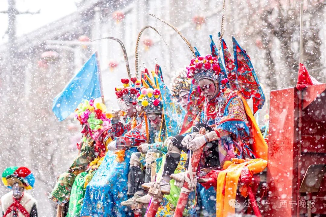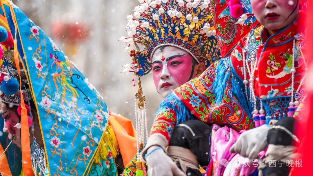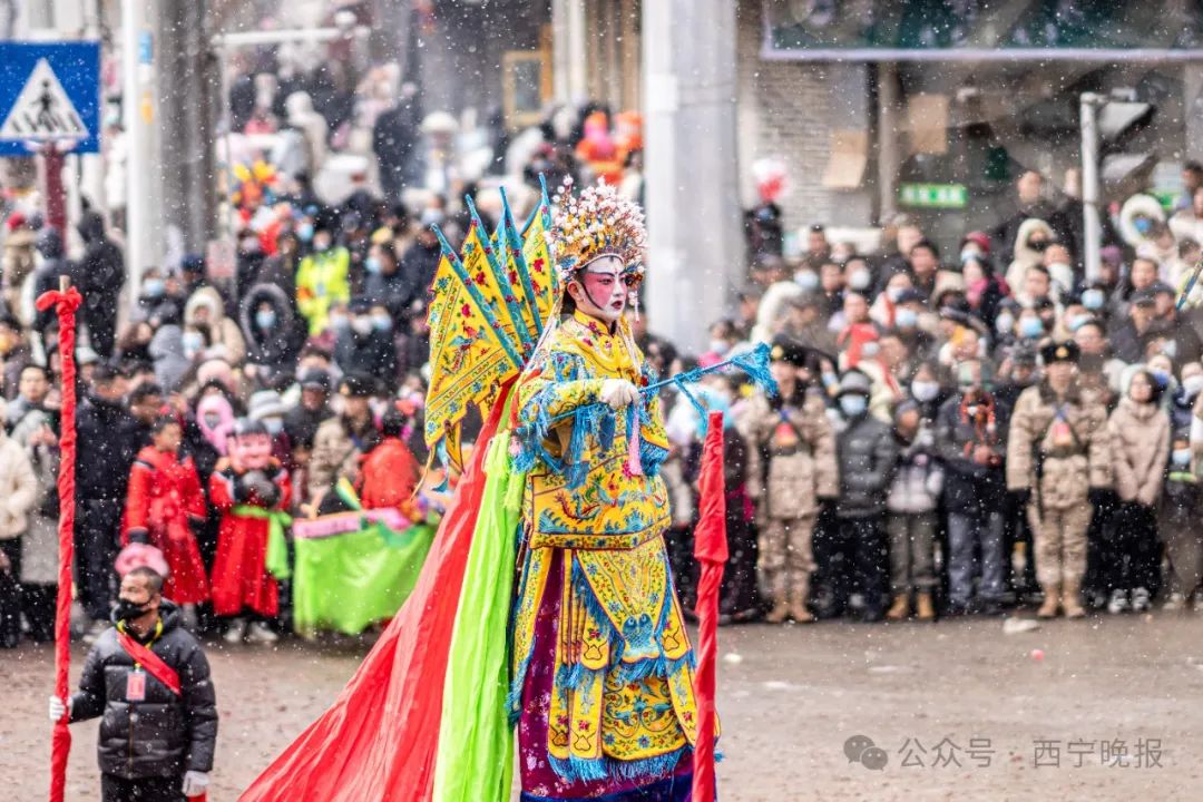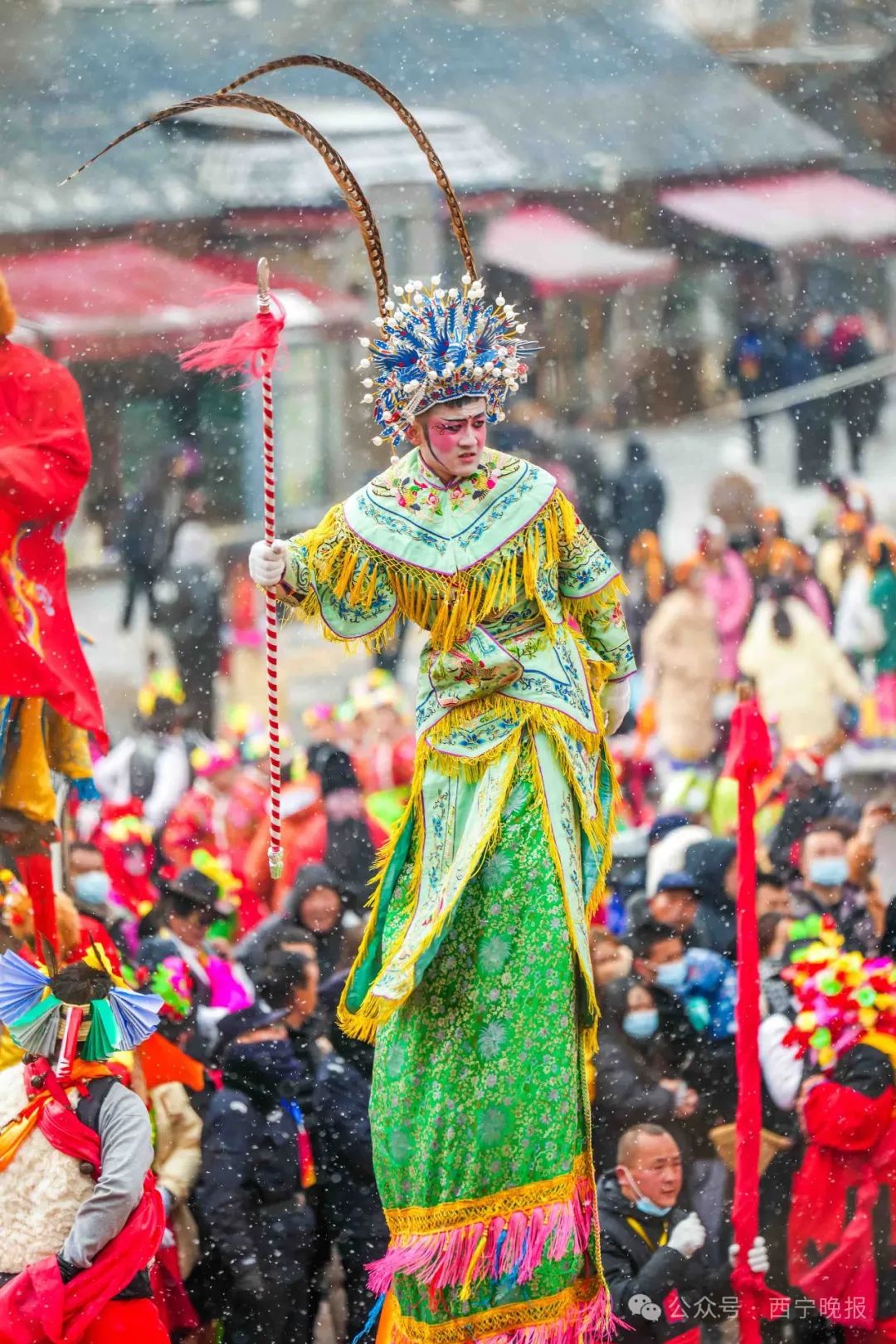 雪中耍社火,你们见过吗?2月21日正月十二,一场小雪悄然而至,前几日回升的温度也骤然下降,漫天飞雪,湟中区社火调演在雪中精彩开演,虽然寒风凌冽,但是演员们精湛的社火技艺却让在场的观众大饱眼福,在雪中观社火,别有一番“风味”。