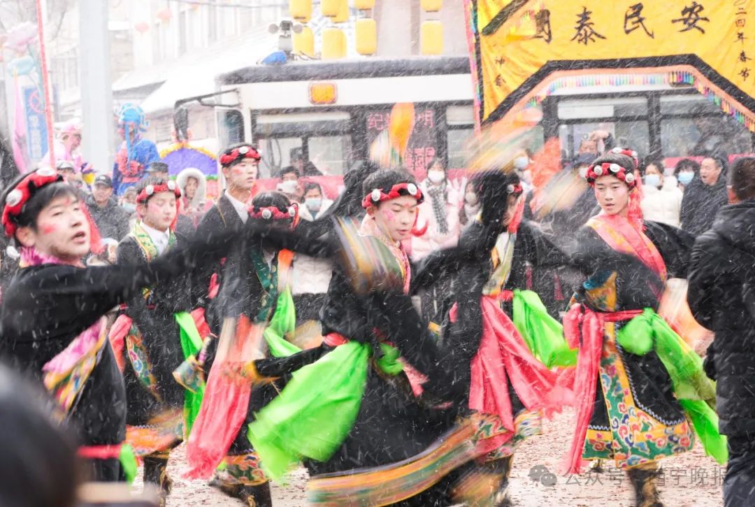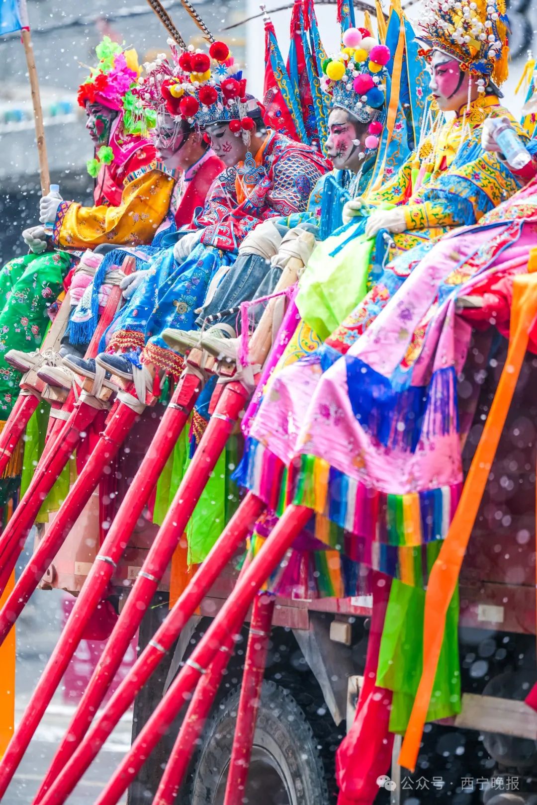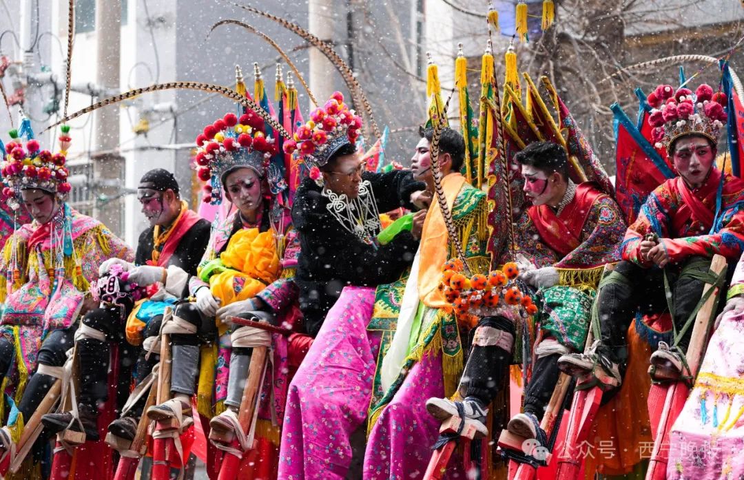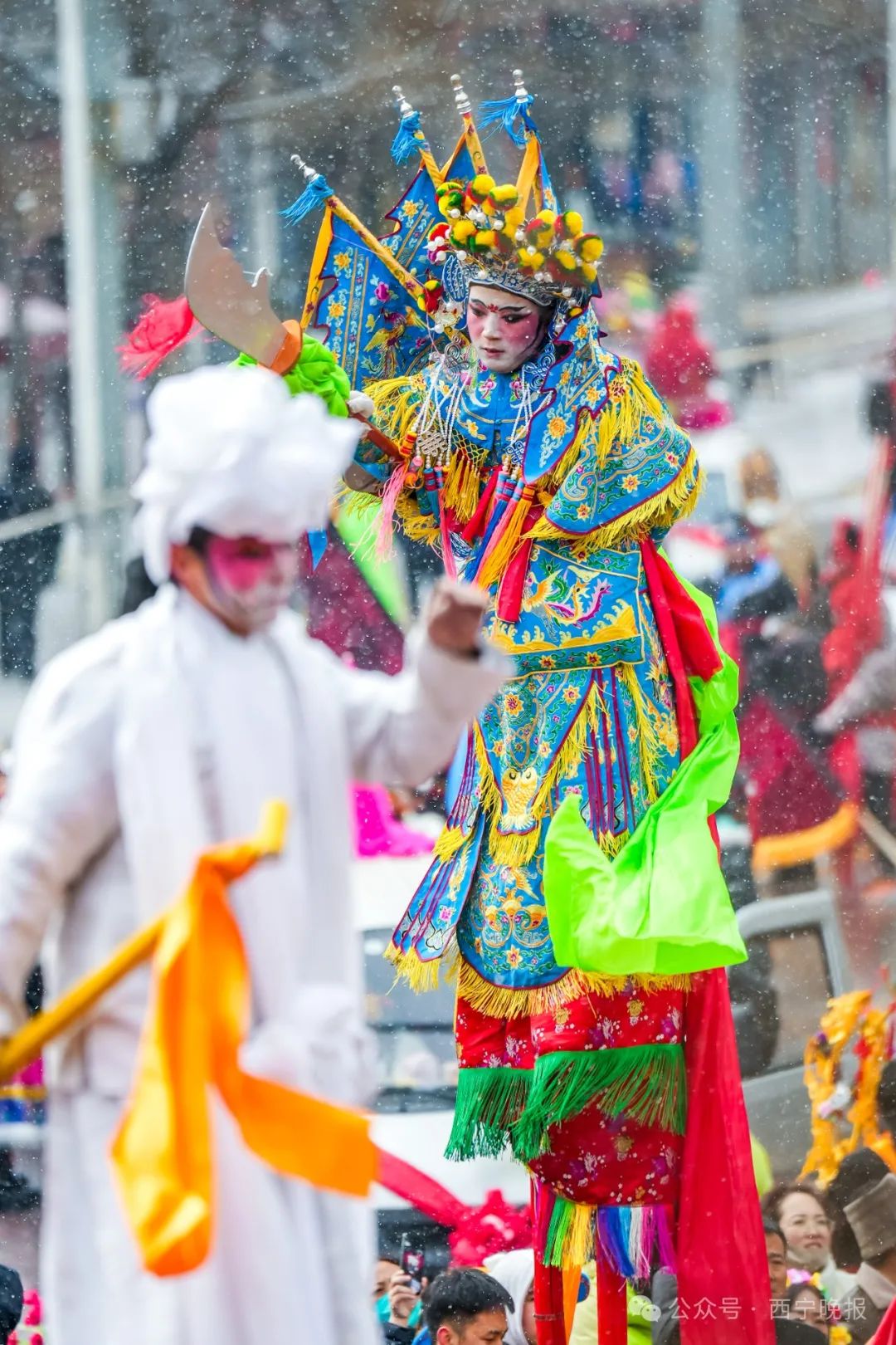 雪中耍社火,你们见过吗?2月21日正月十二,一场小雪悄然而至,前几日回升的温度也骤然下降,漫天飞雪,湟中区社火调演在雪中精彩开演,虽然寒风凌冽,但是演员们精湛的社火技艺却让在场的观众大饱眼福,在雪中观社火,别有一番“风味”。