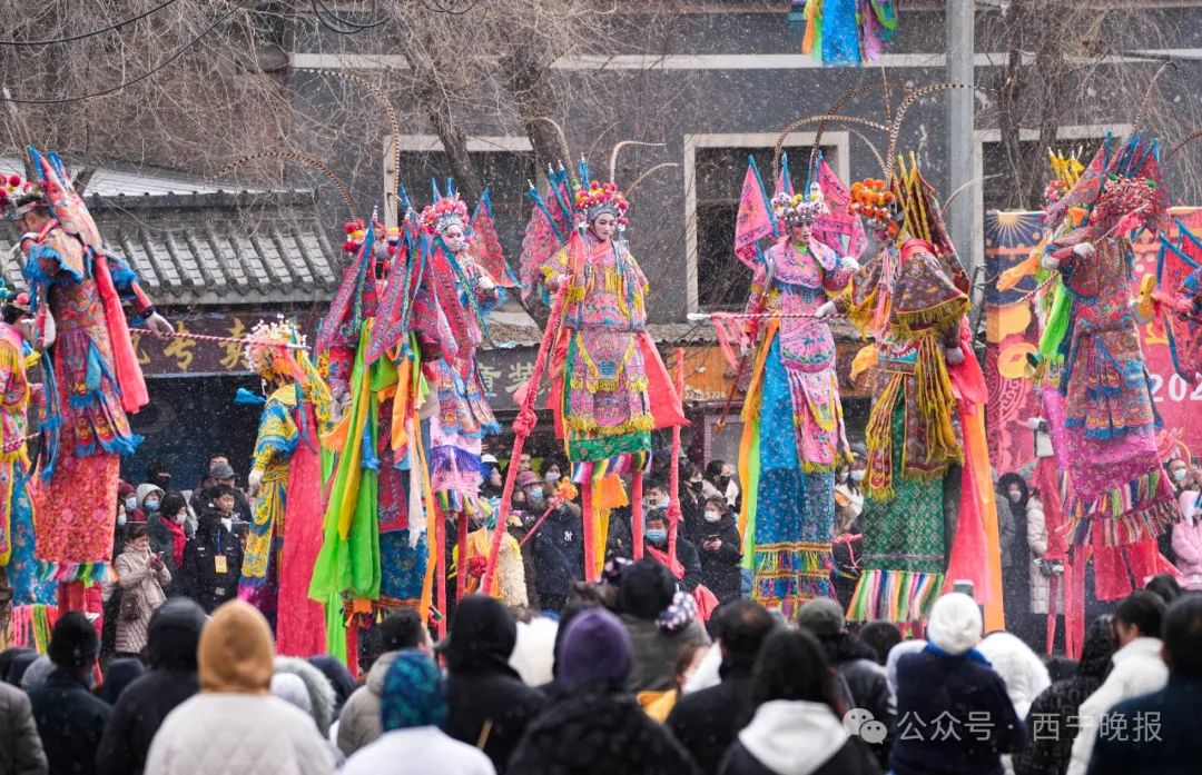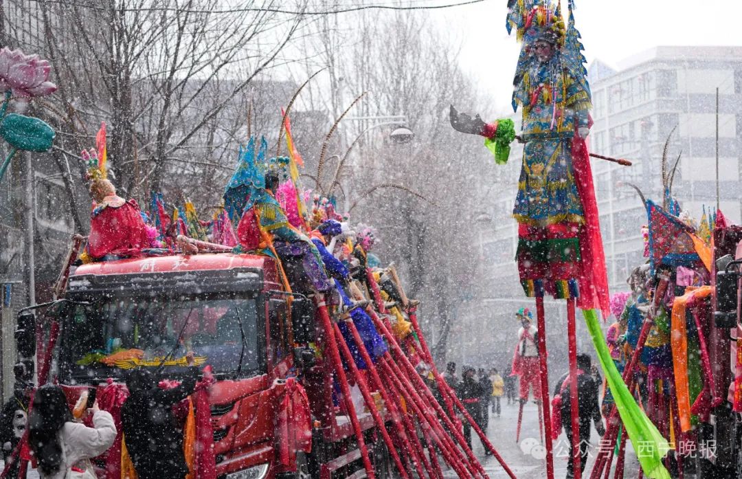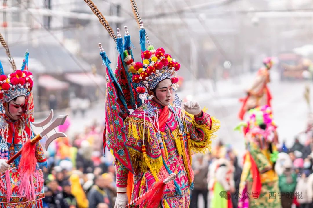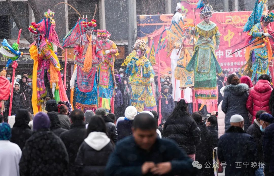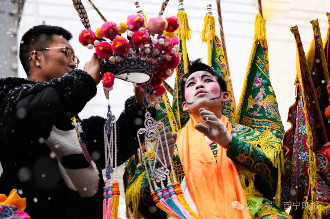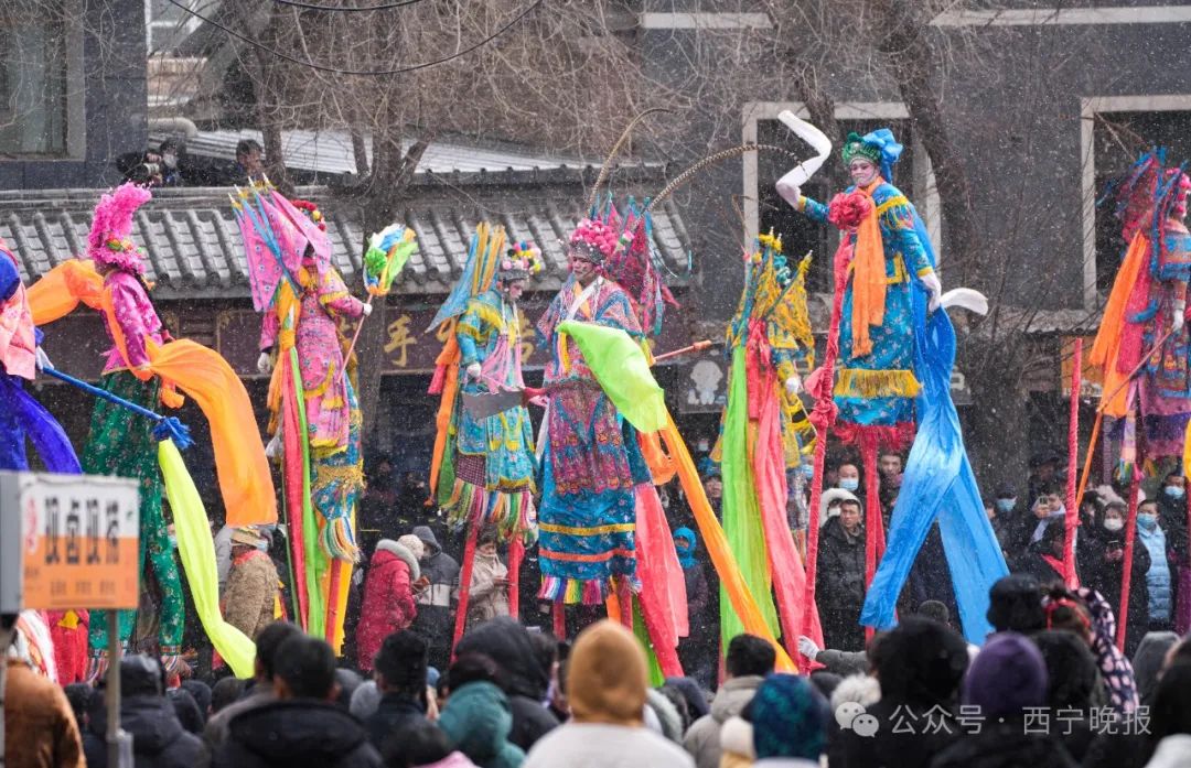 雪中耍社火,你们见过吗?2月21日正月十二,一场小雪悄然而至,前几日回升的温度也骤然下降,漫天飞雪,湟中区社火调演在雪中精彩开演,虽然寒风凌冽,但是演员们精湛的社火技艺却让在场的观众大饱眼福,在雪中观社火,别有一番“风味”。