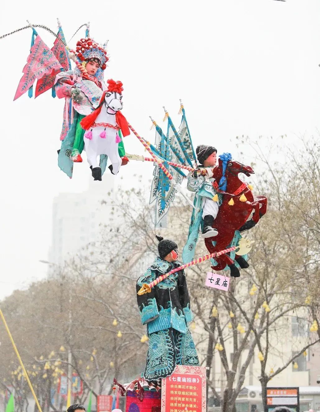 静宁县举办了以龙年元素、神话典故、祈福纳祥、静宁苹果等为主题的彩车展演,还有舞龙、舞狮、腰鼓、打花鞭、春官说诗等民俗社火表演,让人目不暇接,为广大群众带来精彩绝伦的“元宵文化大餐”和浓郁的西北年味。